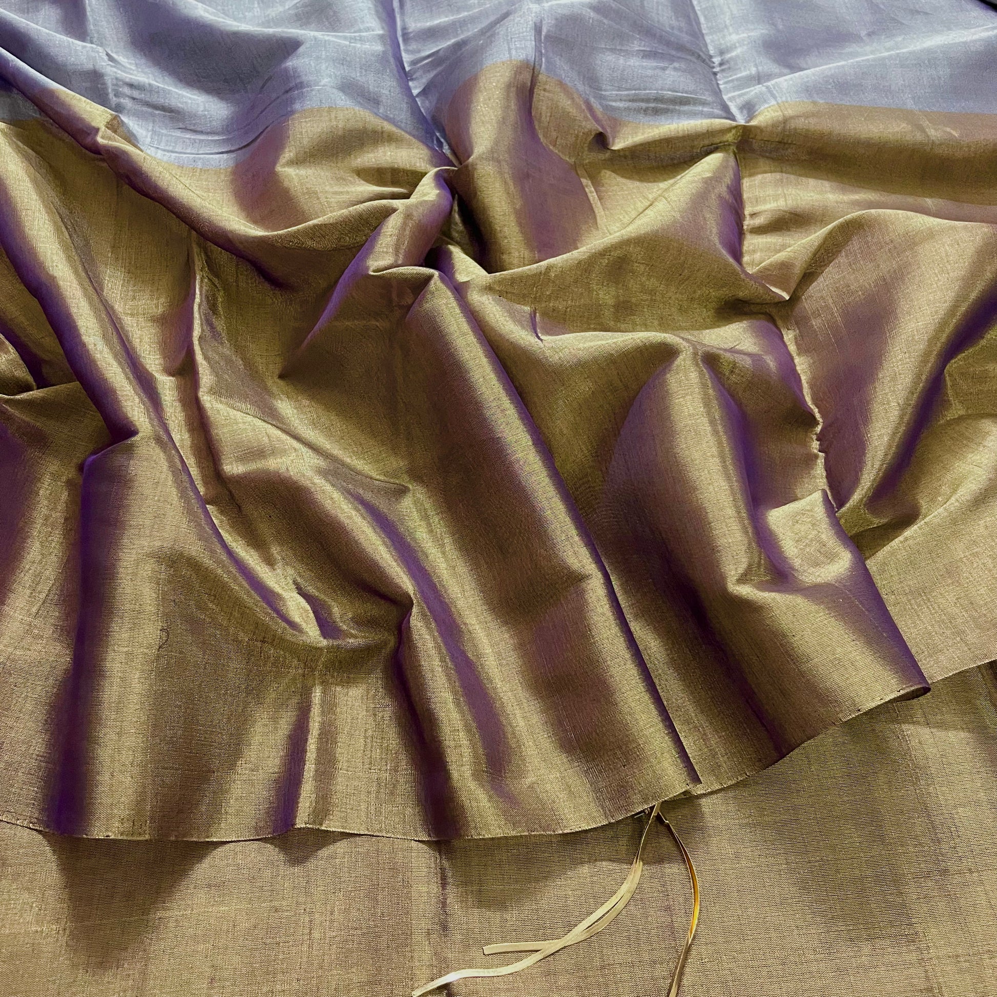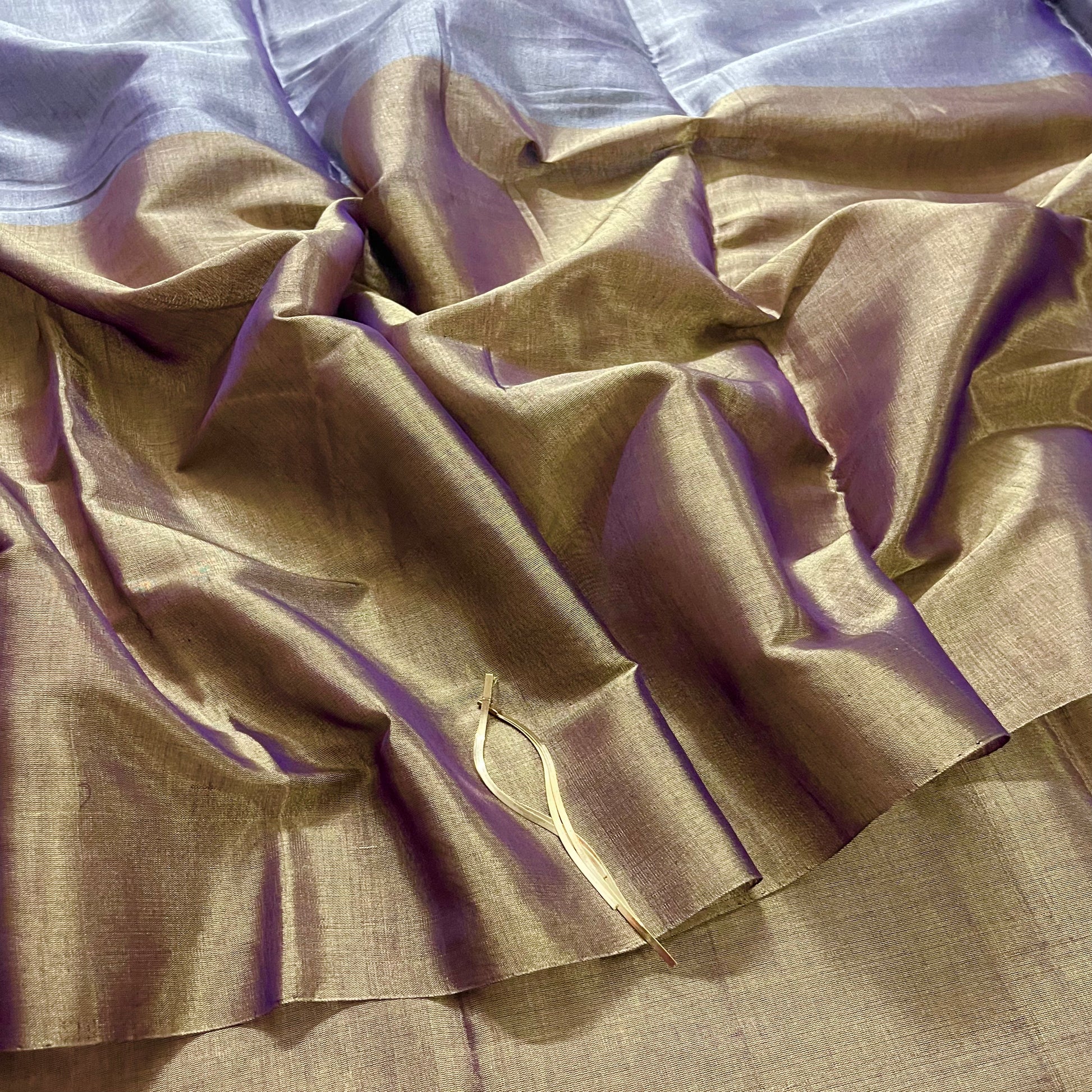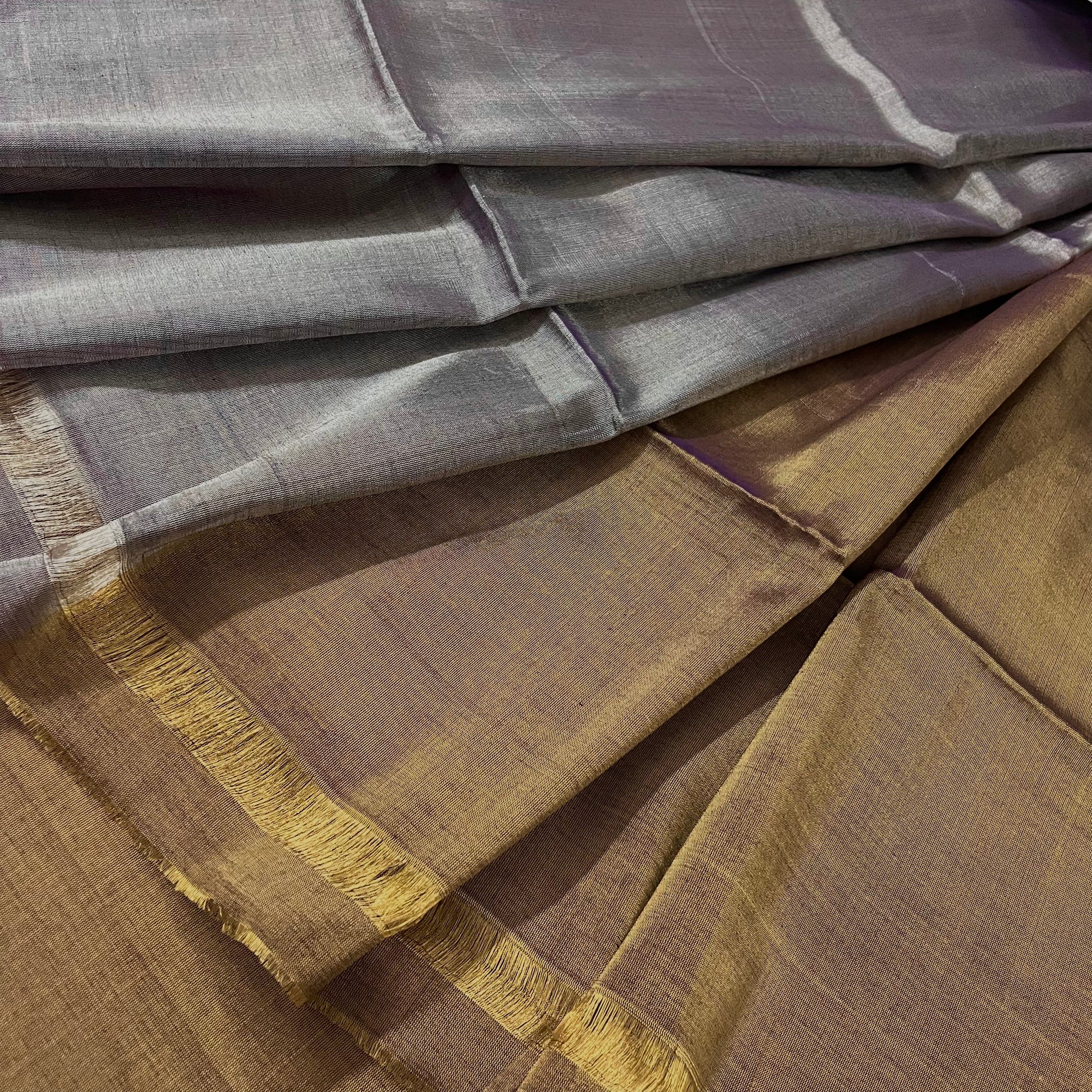 The saree comes with a running blouse piece. Fabric of the saree is Chanderi Tissue Silk