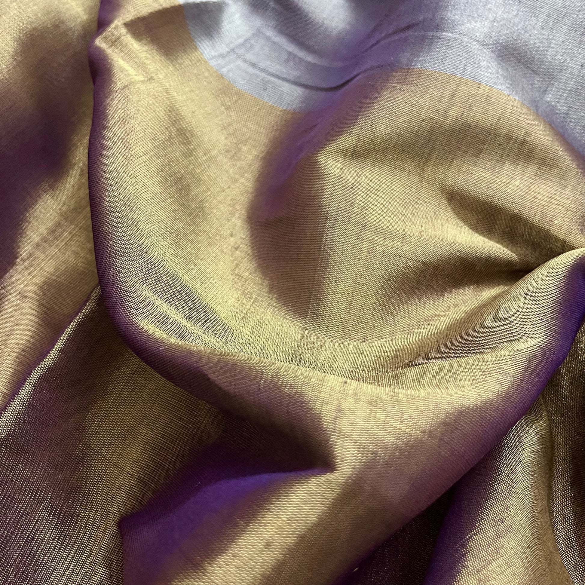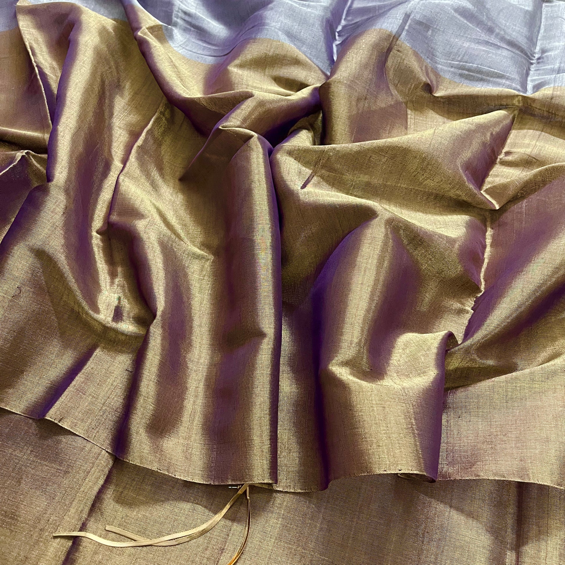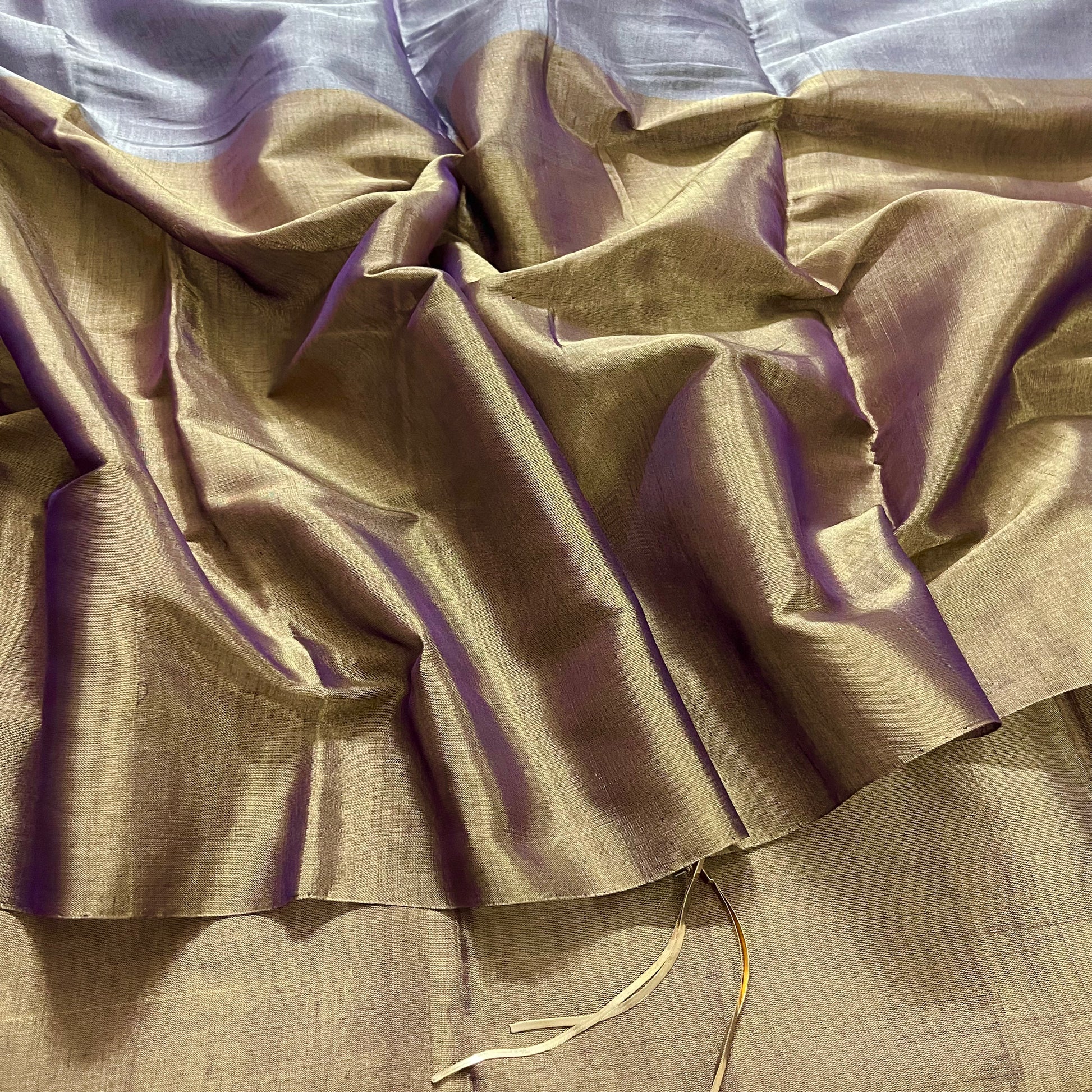 The saree comes with a running blouse piece. Fabric of the saree is Chanderi Tissue Silk