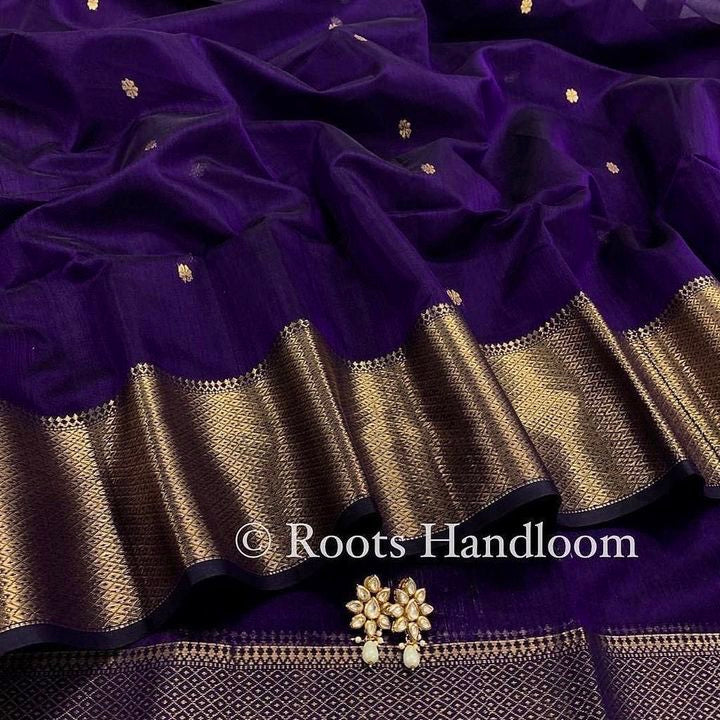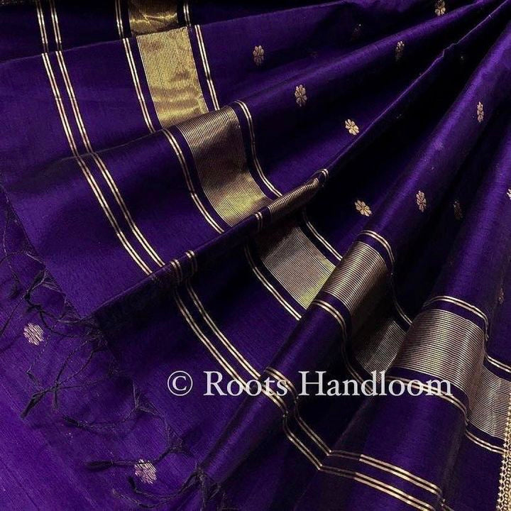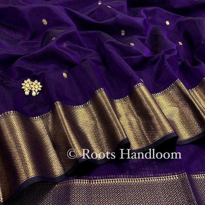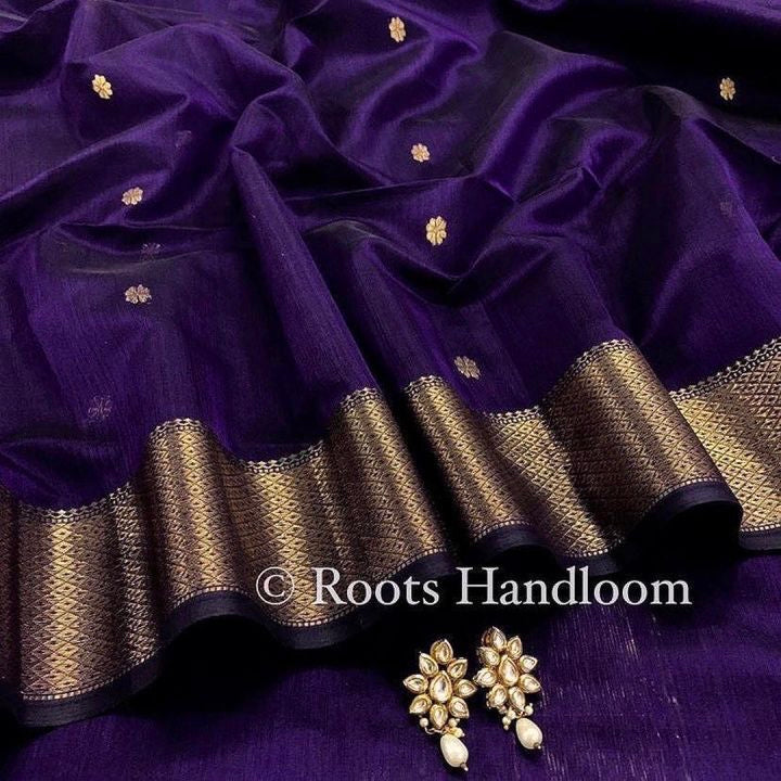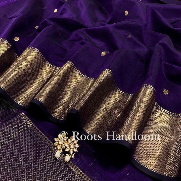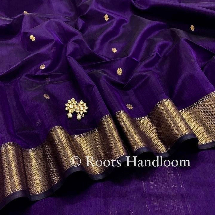 Dark Purple Maheshwari Saree with Flower Bootis all over it