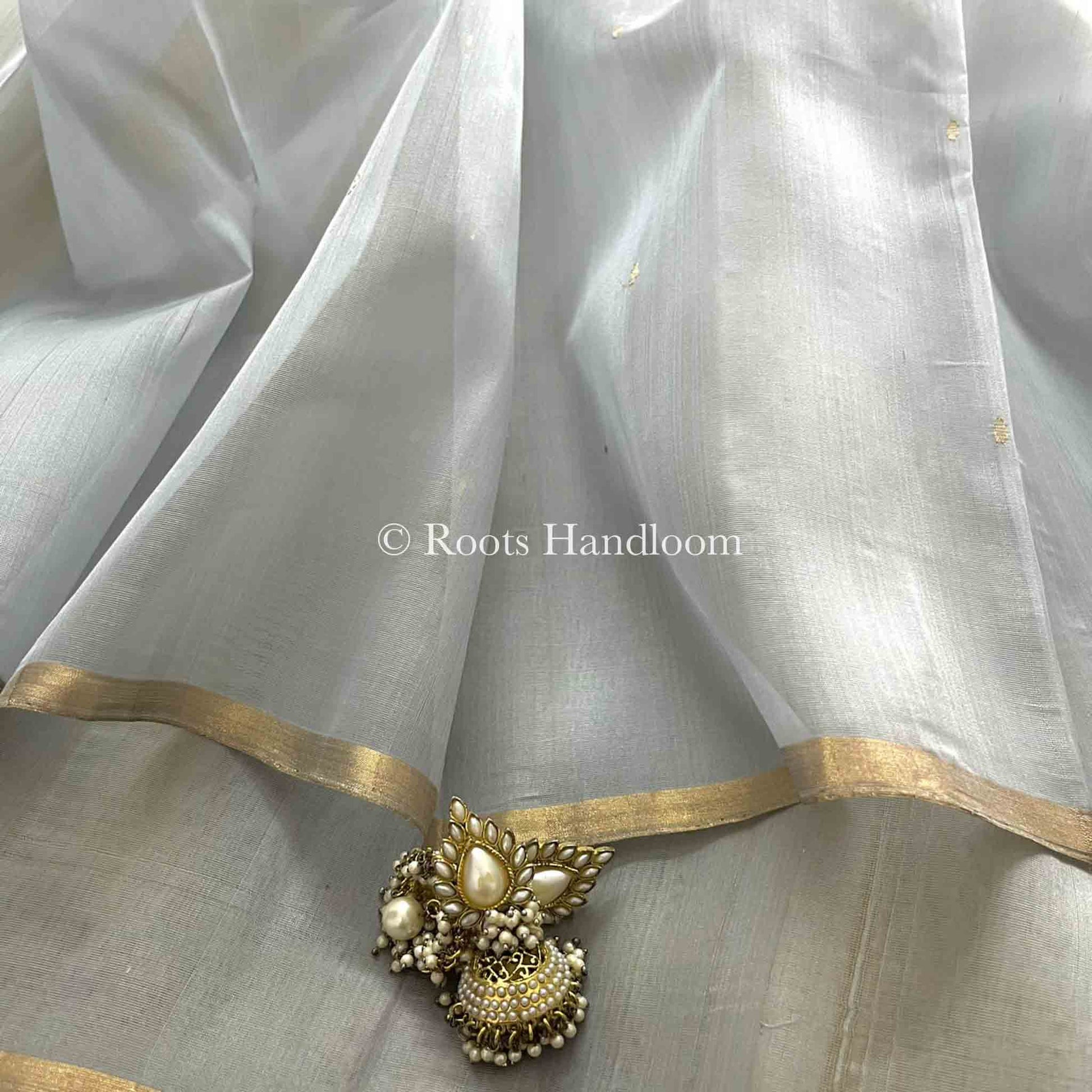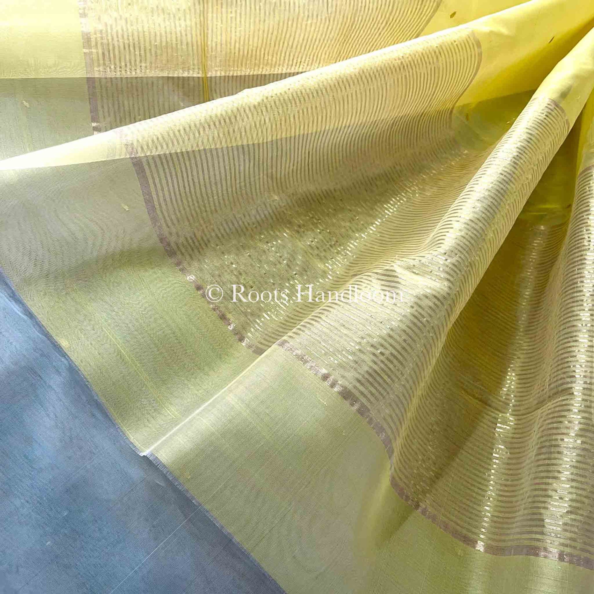 Gold Olive & Grey Chanderi Organza Silk Saree with Zari Bootis all over