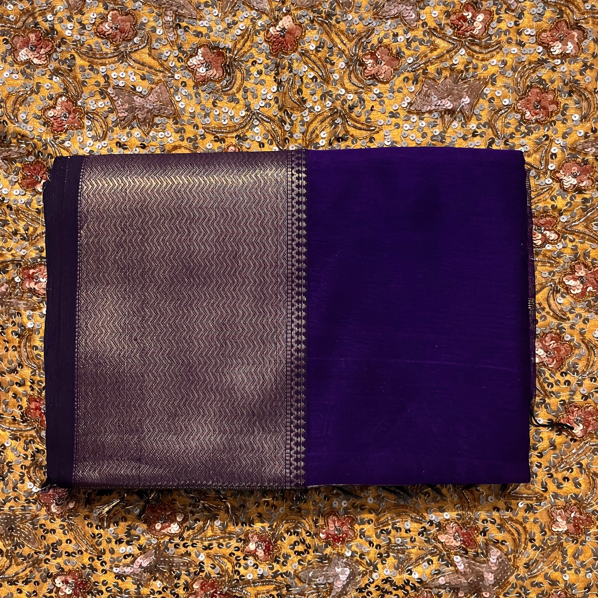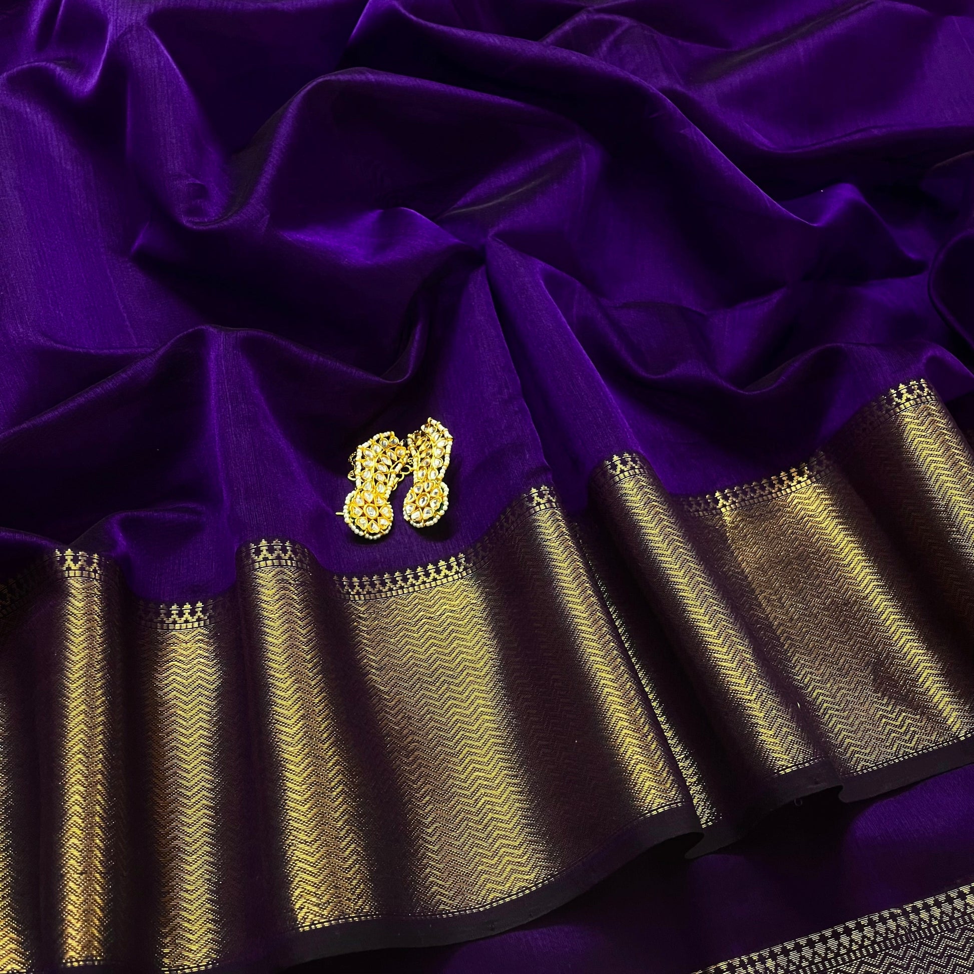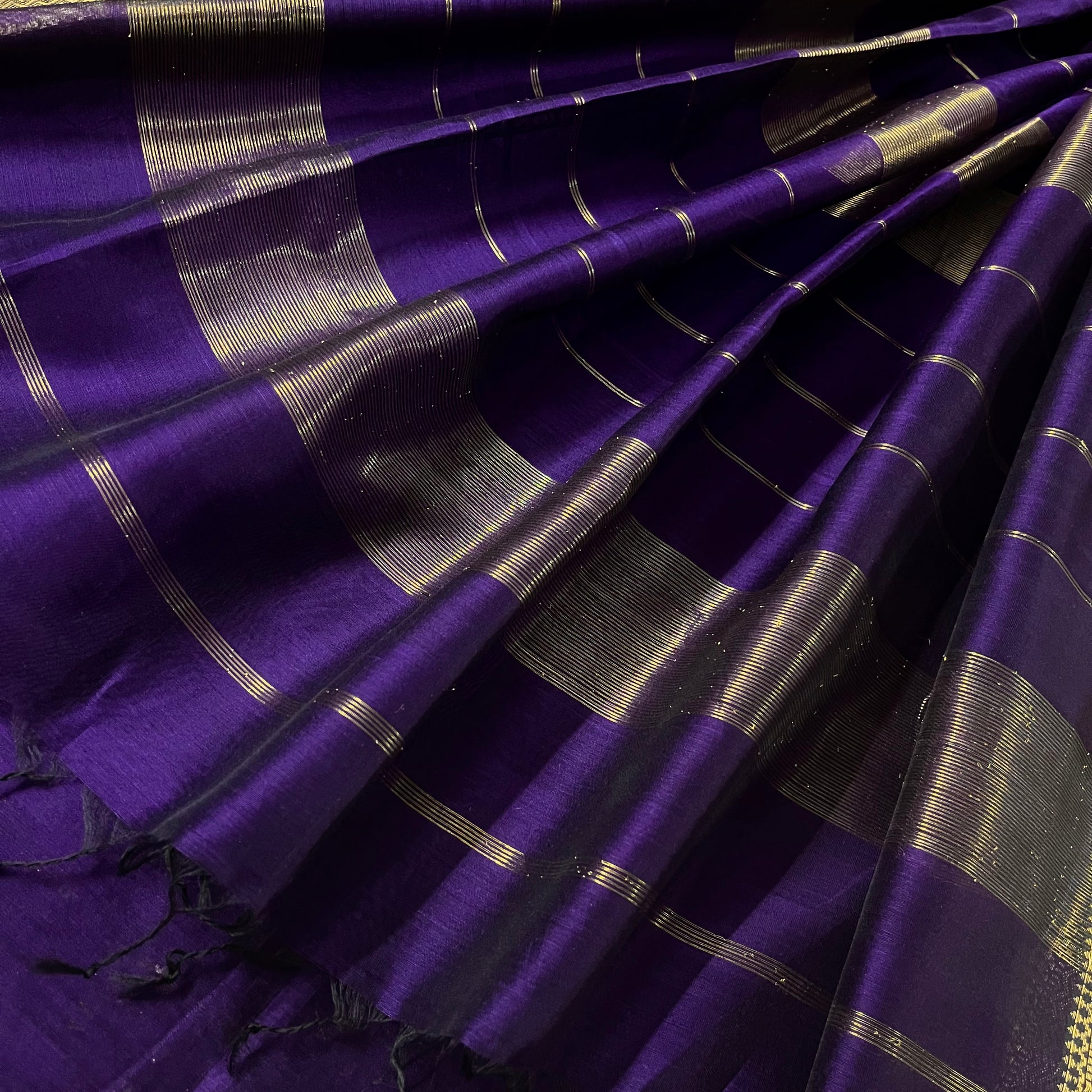 Dark purple Maheshwari saree with zari lines on pallu