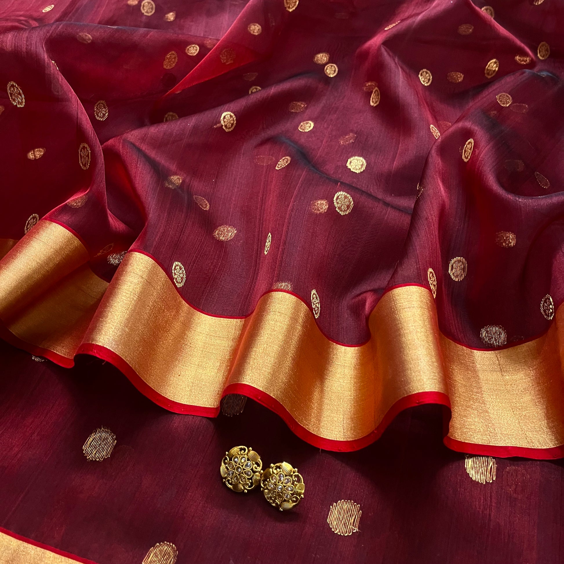 Maroon Chanderi silk saree with zari motifs on pallu