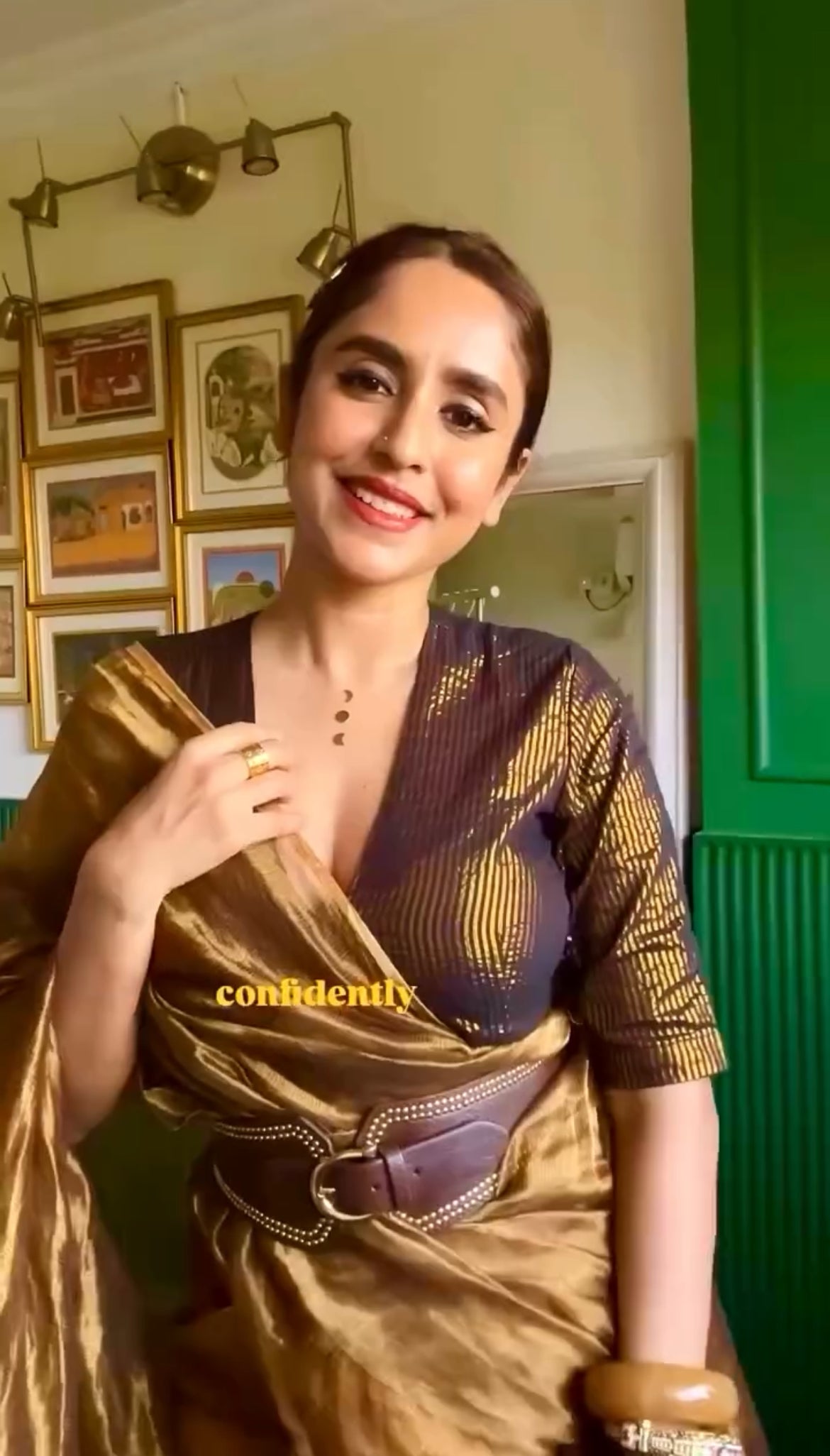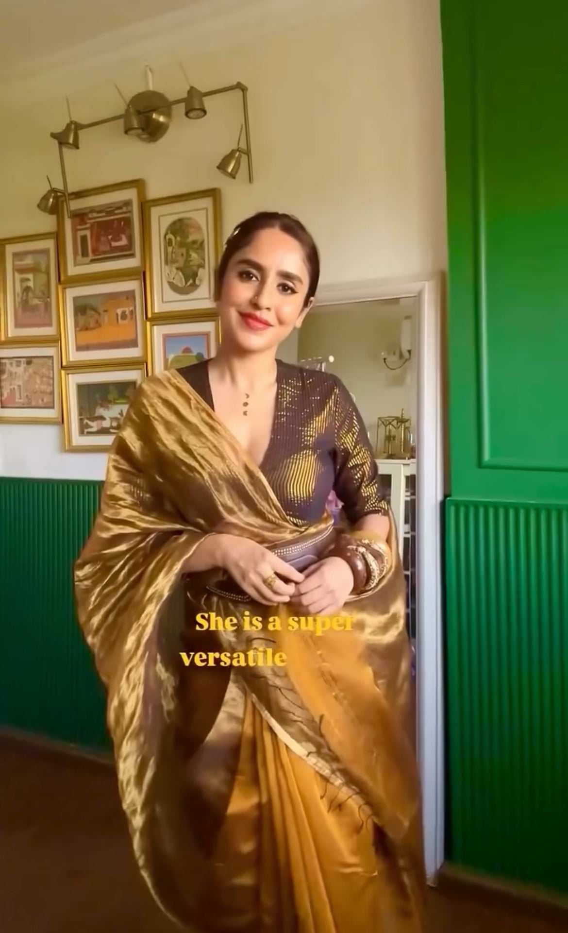Mustard and gold maheshwari saree with zari border