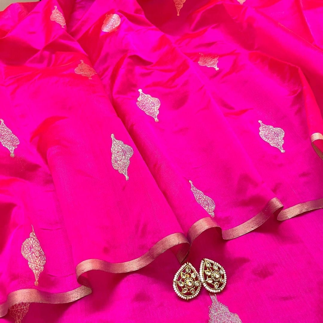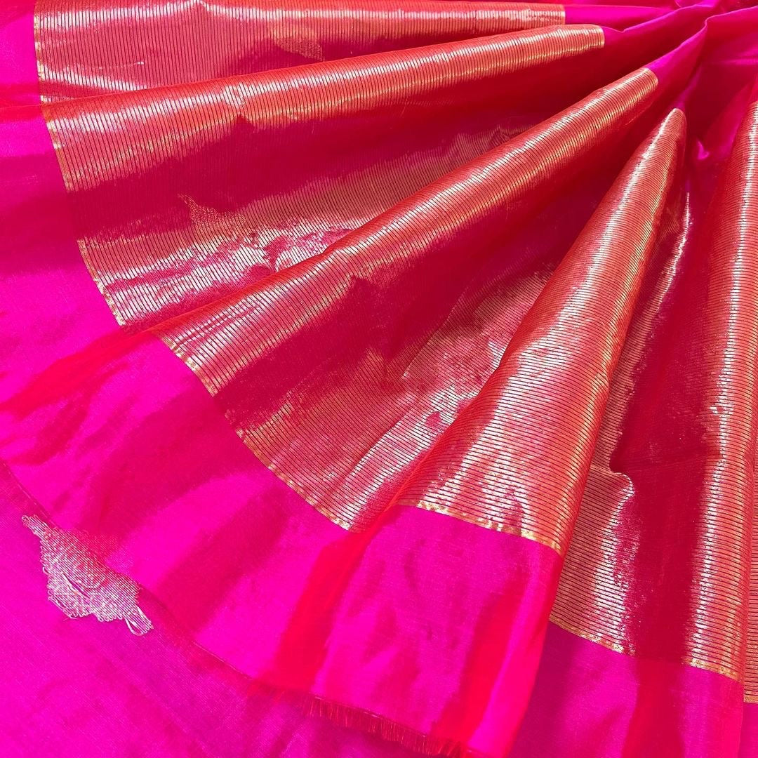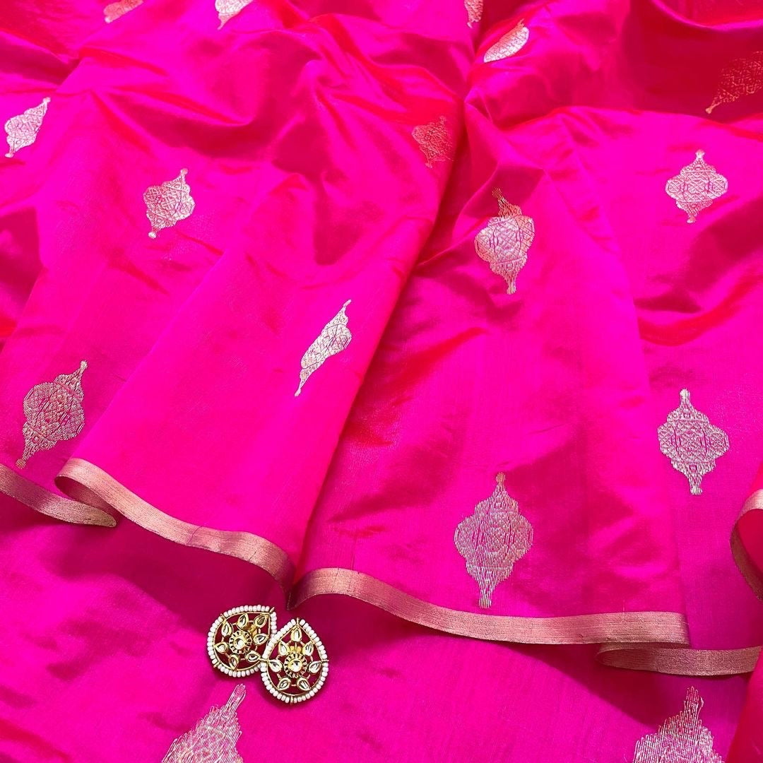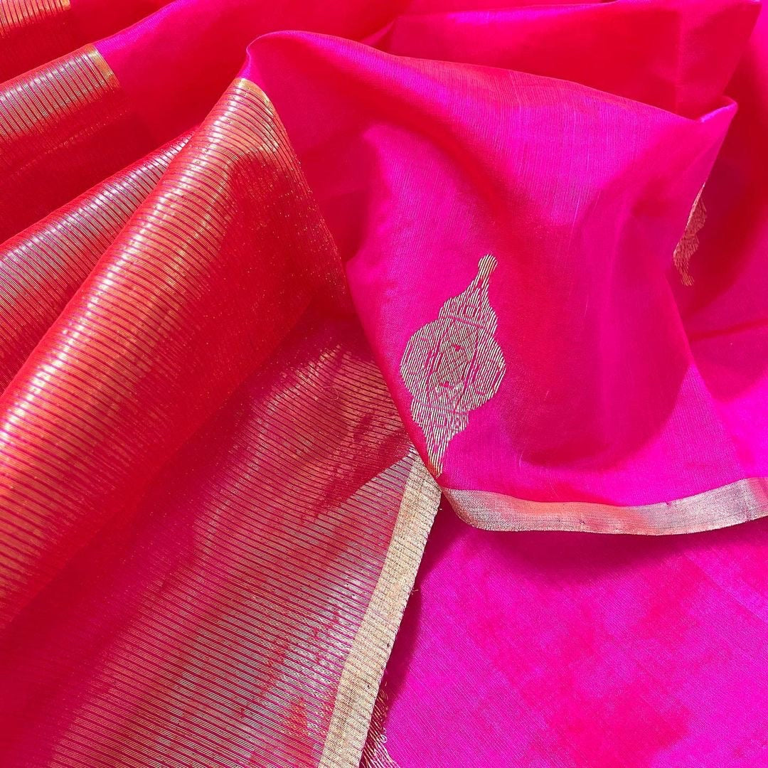 Rani pink chanderi silk saree with jhoomar motifs all over