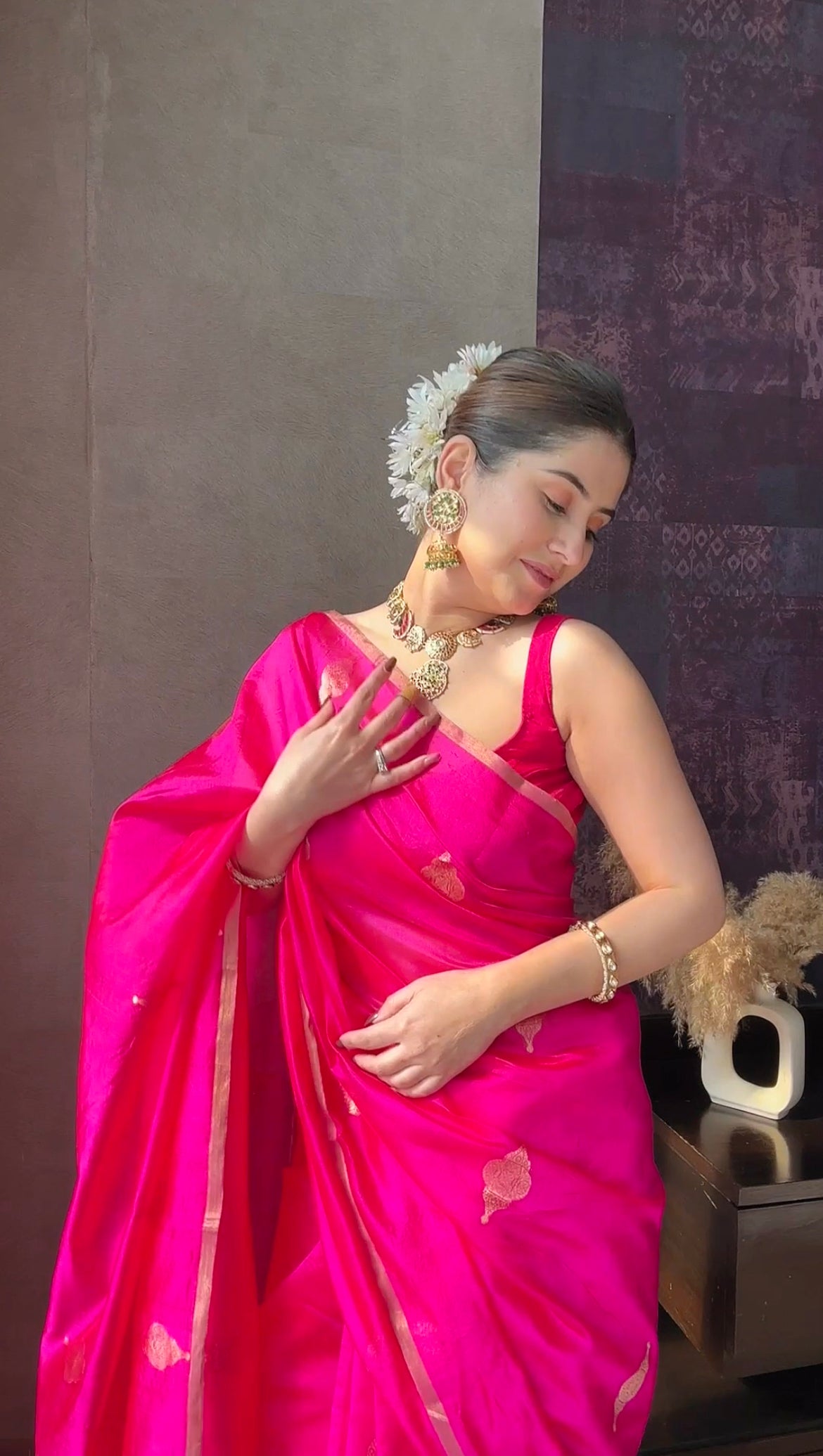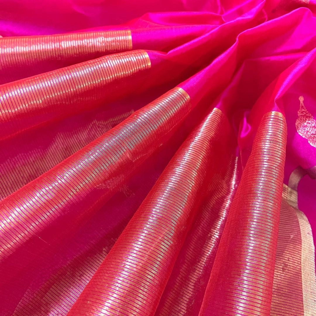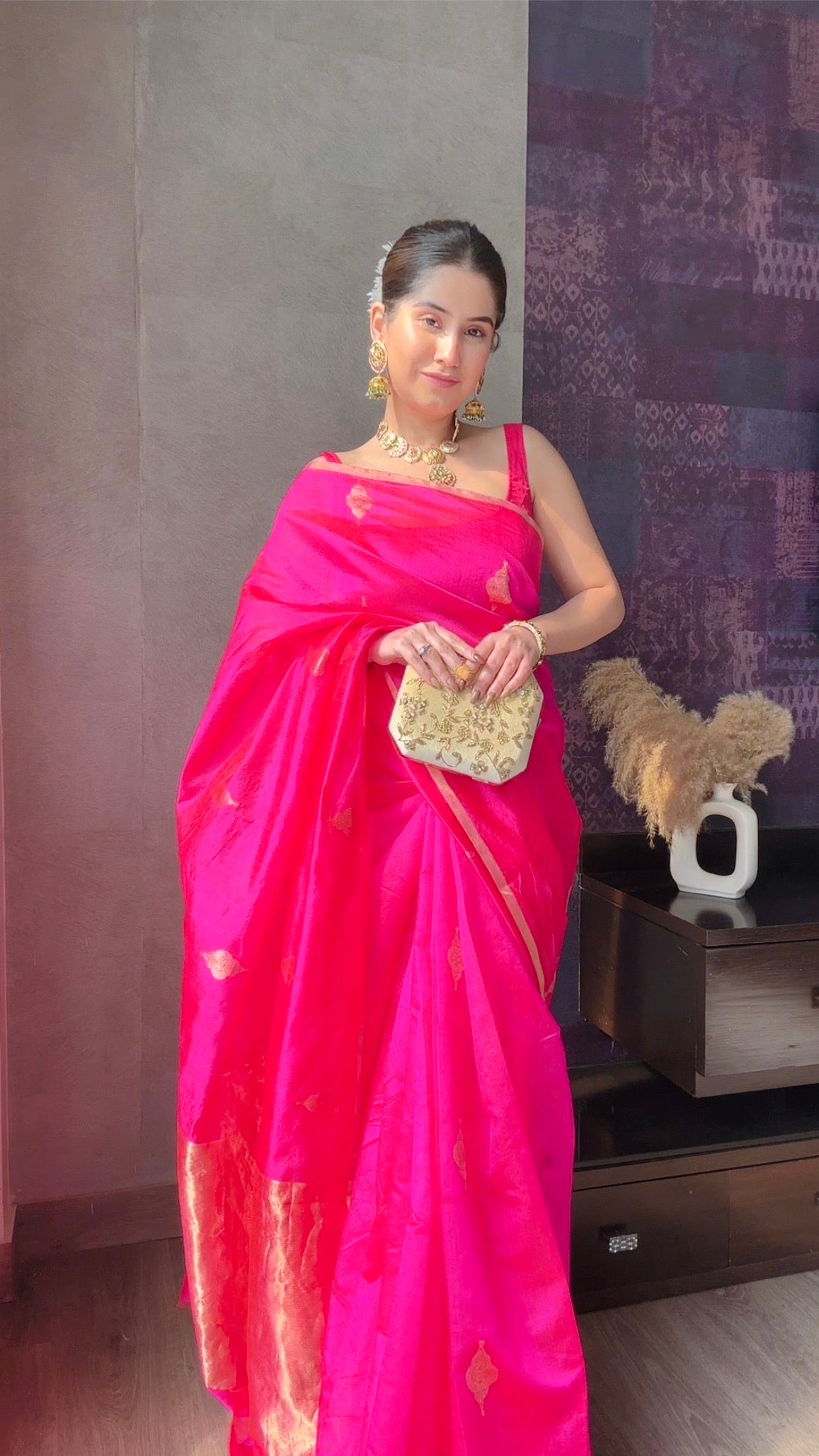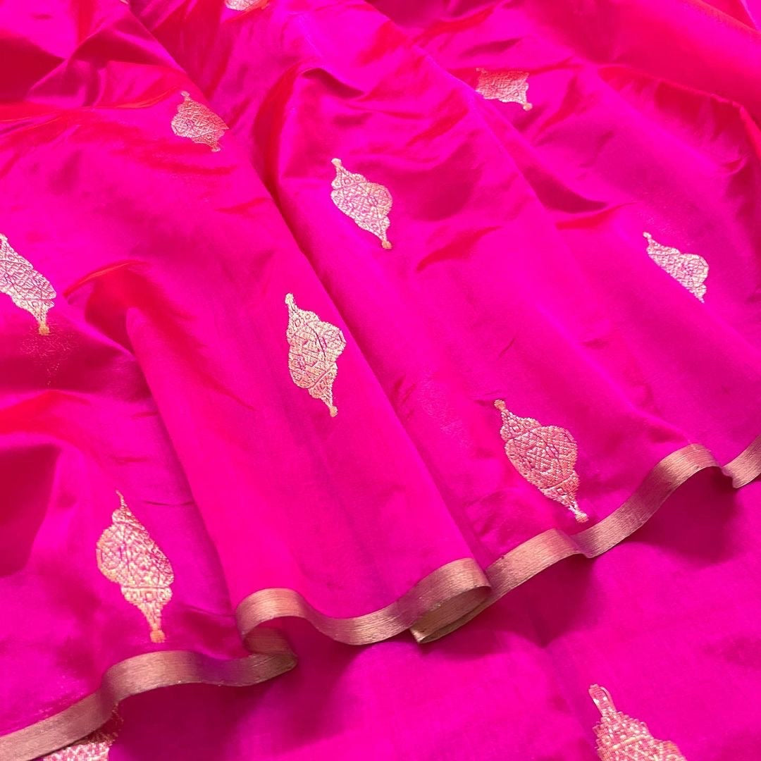 Rani pink chanderi silk saree with jhoomar motifs all over